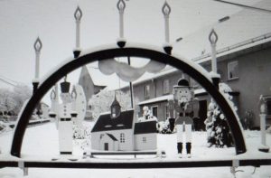 Der Heimatverein schaltet traditionell die Beleuchtung am Schönborner Schwibbogen an. Dazu gibt es Thüringer Bratwurst und Glühwein.
