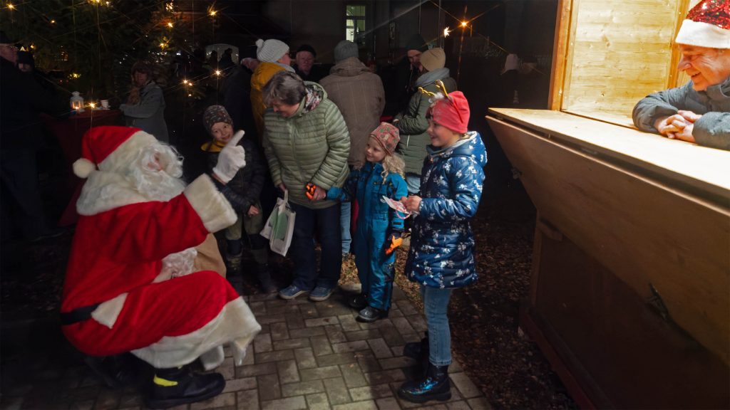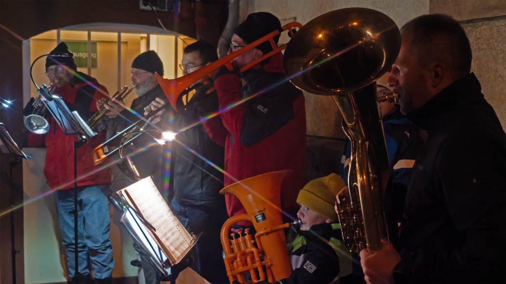 Unterdessen verteilte der Weihnachtsmann ganz großzügig kleine Gaben, während der Posaunenchor der Kirchgemeinde seinen Instrumenten vorweihnachtliche Klänge entlockte.
